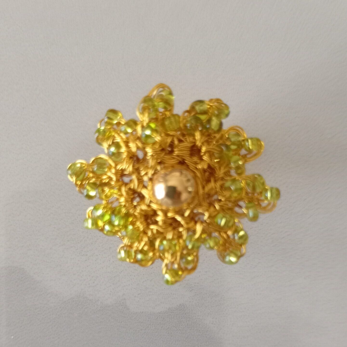 Anello in rame placcato in oro 14k  a forma di fiore con sfera centrale e inserti di cristallo color verde, simbolo di rinnovamento, armonia e amore, aggiunge un tocco di eleganza al tuo look, lavorazione artigianale. Diametro 19 circonferenza 60 mm.