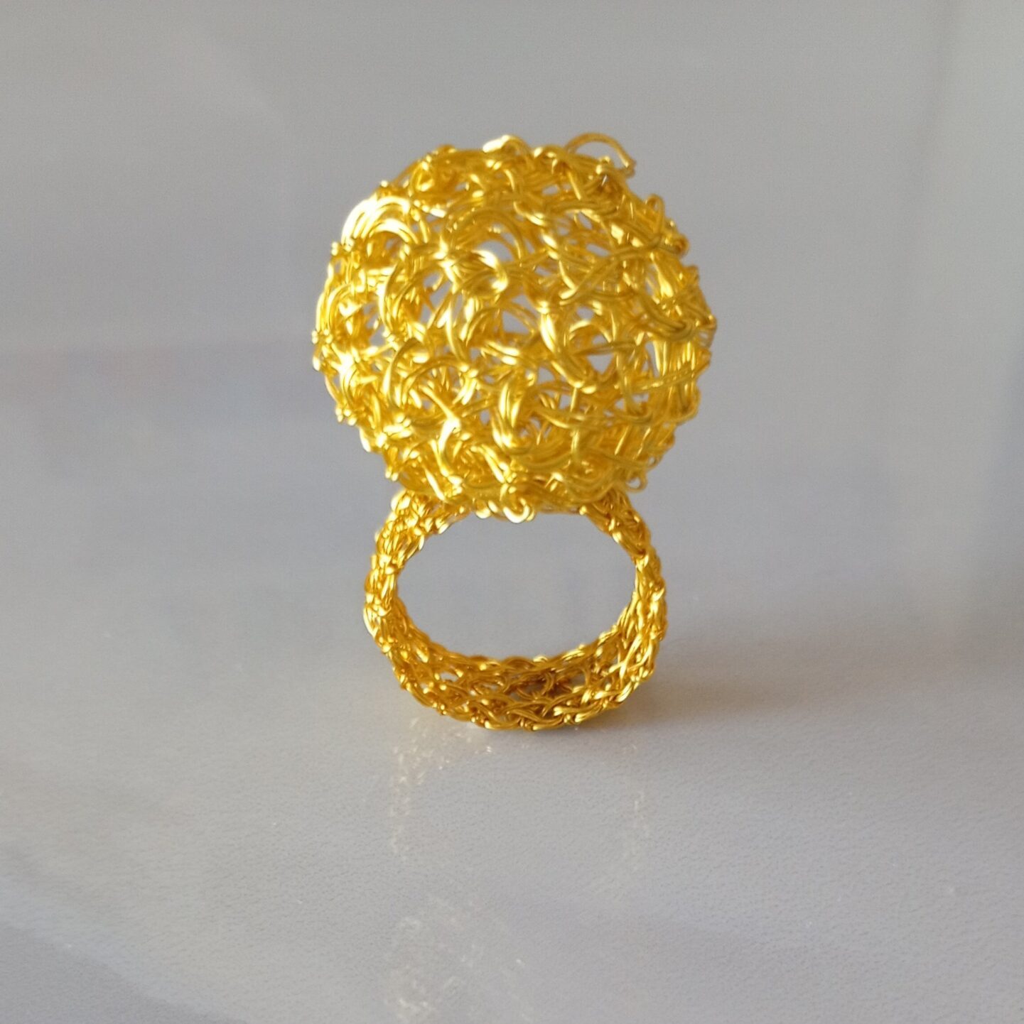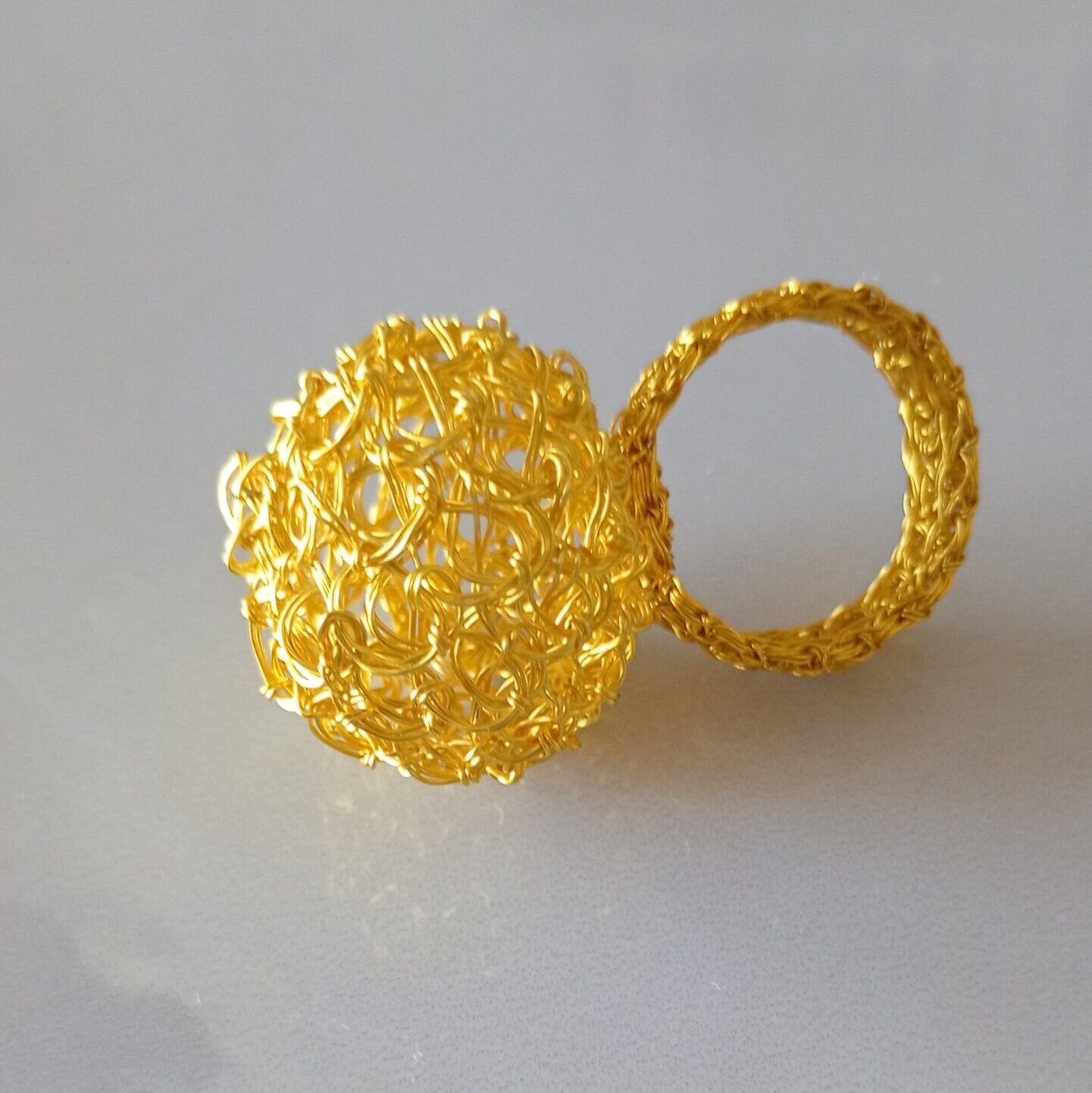 Anello in rame con placcatura in oro 14k a forma di sfera realizzato con una struttura intrecciata complessa che conferisce bellezza e un’aura di mistero all’oggetto, aggiungi un tocco di eleganza al tuo look, lavorazione artigianale. Diametro 19 circonferenza 60 mm – abbinabile con orecchini R0013 e bracciale B0009.
