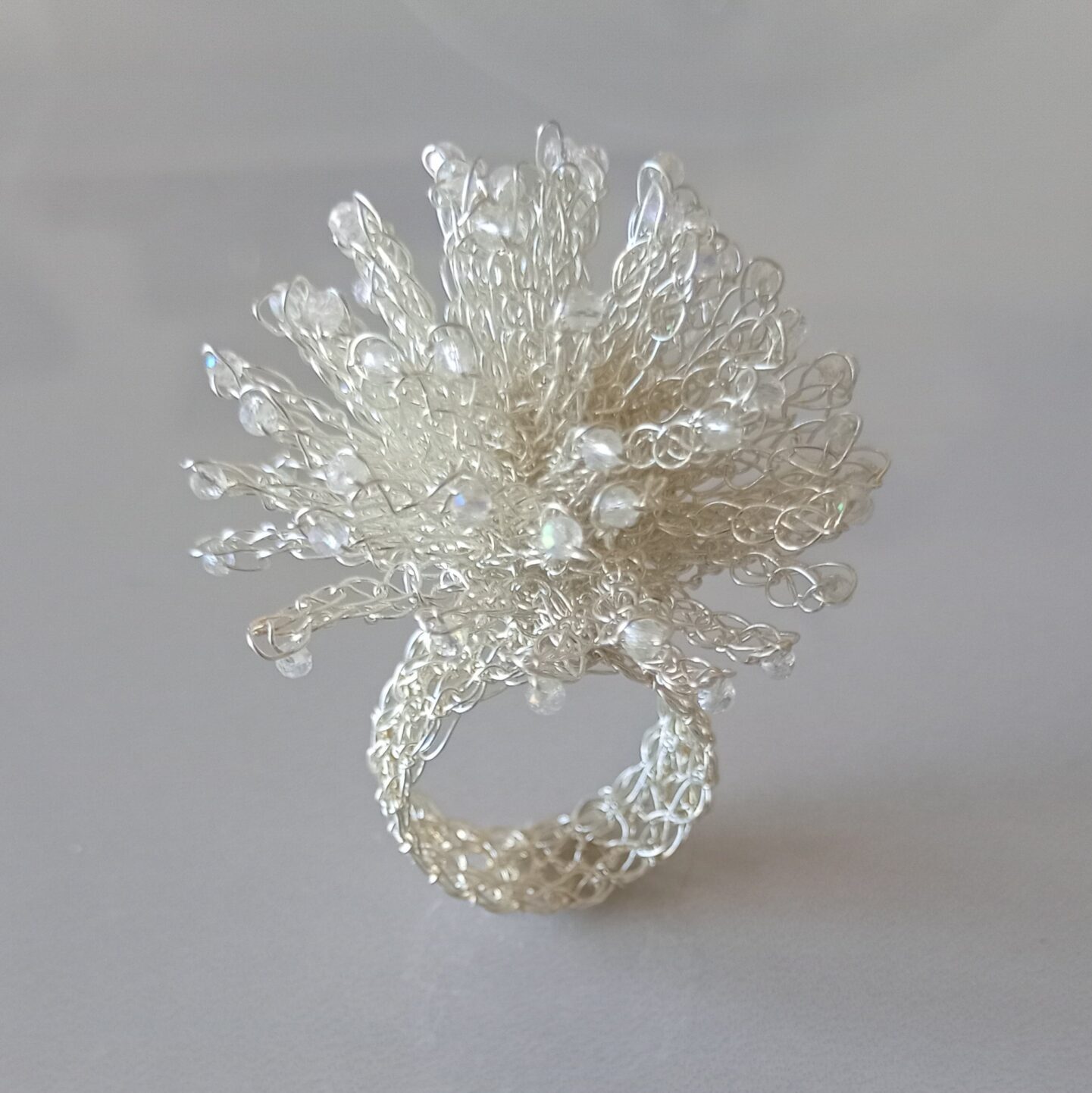Anello in argento 925 con design a forma di fiore e perline di cristallo, simbolo di un legame prezioso, duraturo e destinato a crescere sottraendolo alla fugacità del tempo, aggiungi un tocco di eleganza al tuo look, lavorazione artigianale. Diametro 19 circonferenza 60 mm – abbinabile con orecchini R0006.
