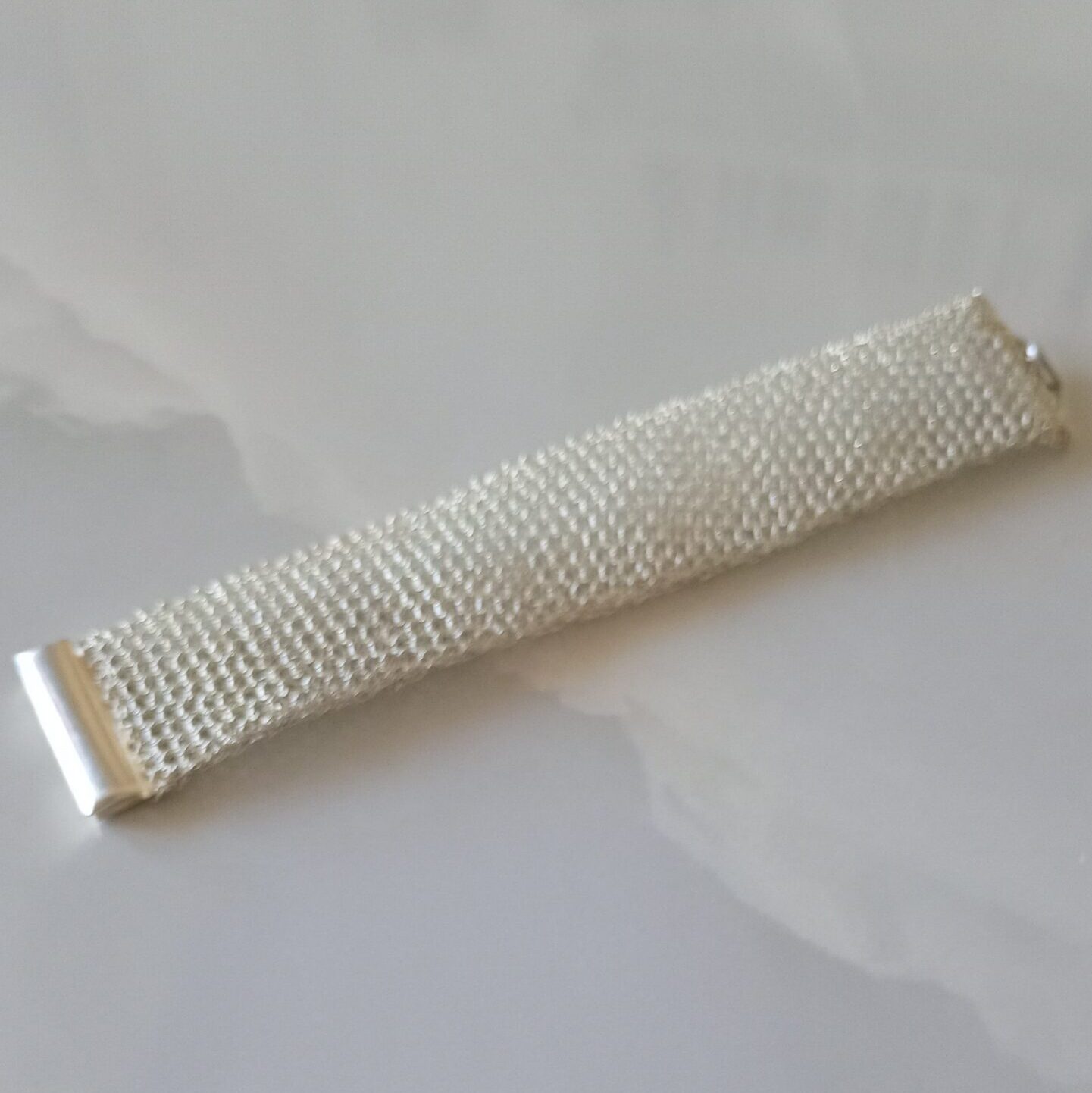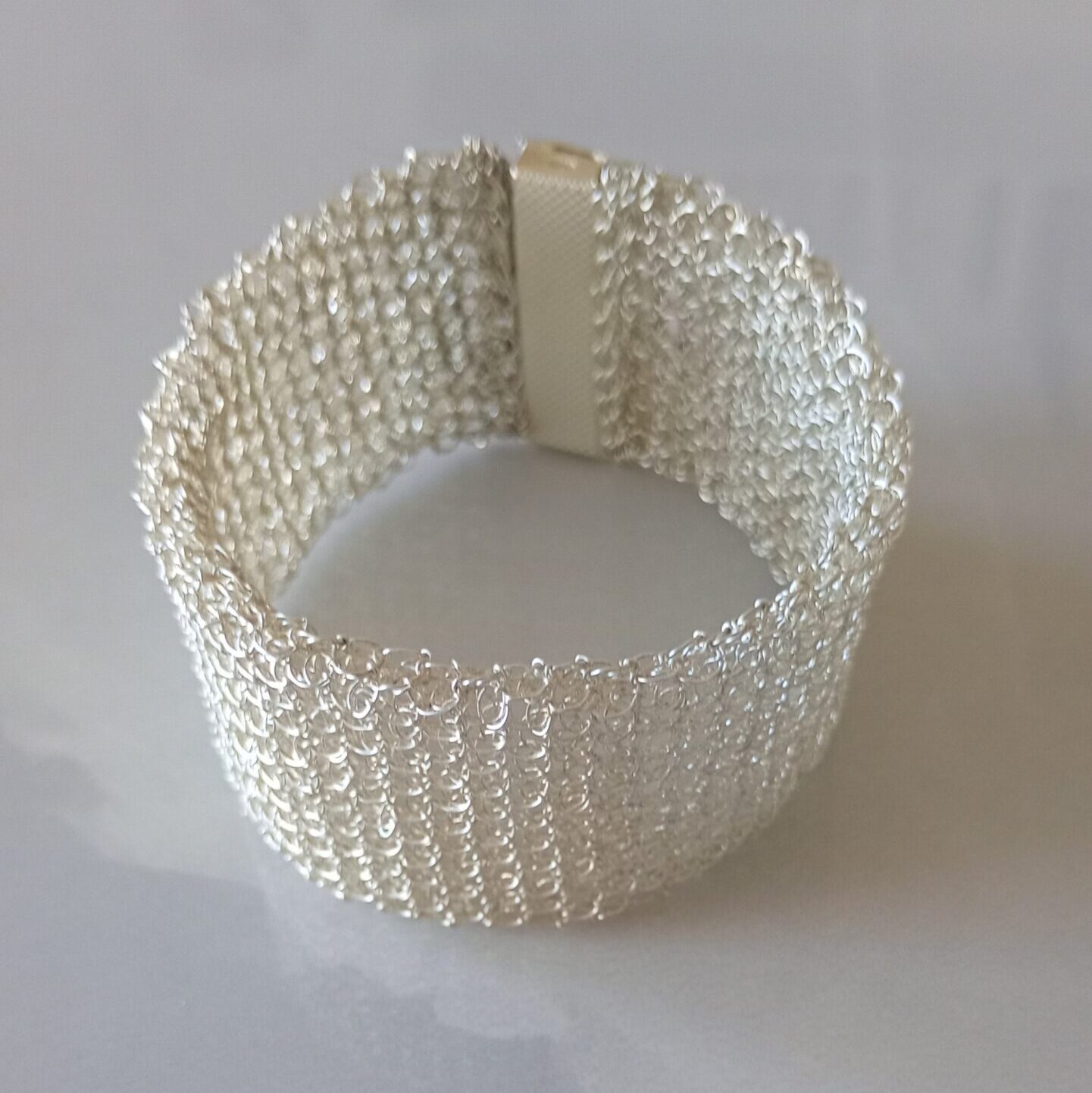 Bracciale in argento 925 di forma cilindrica a maglia tubolare con chiusura a cassetta dallo  stile originale ed esclusivo, realizzato da sapienti mani artigianali. Il gioiello è splendido va indossato con disinvoltura aggiungendo eleganza alla tua personalità . Lunghezza 17 cm altezza 3 cm – abbinabile con anello A0005.