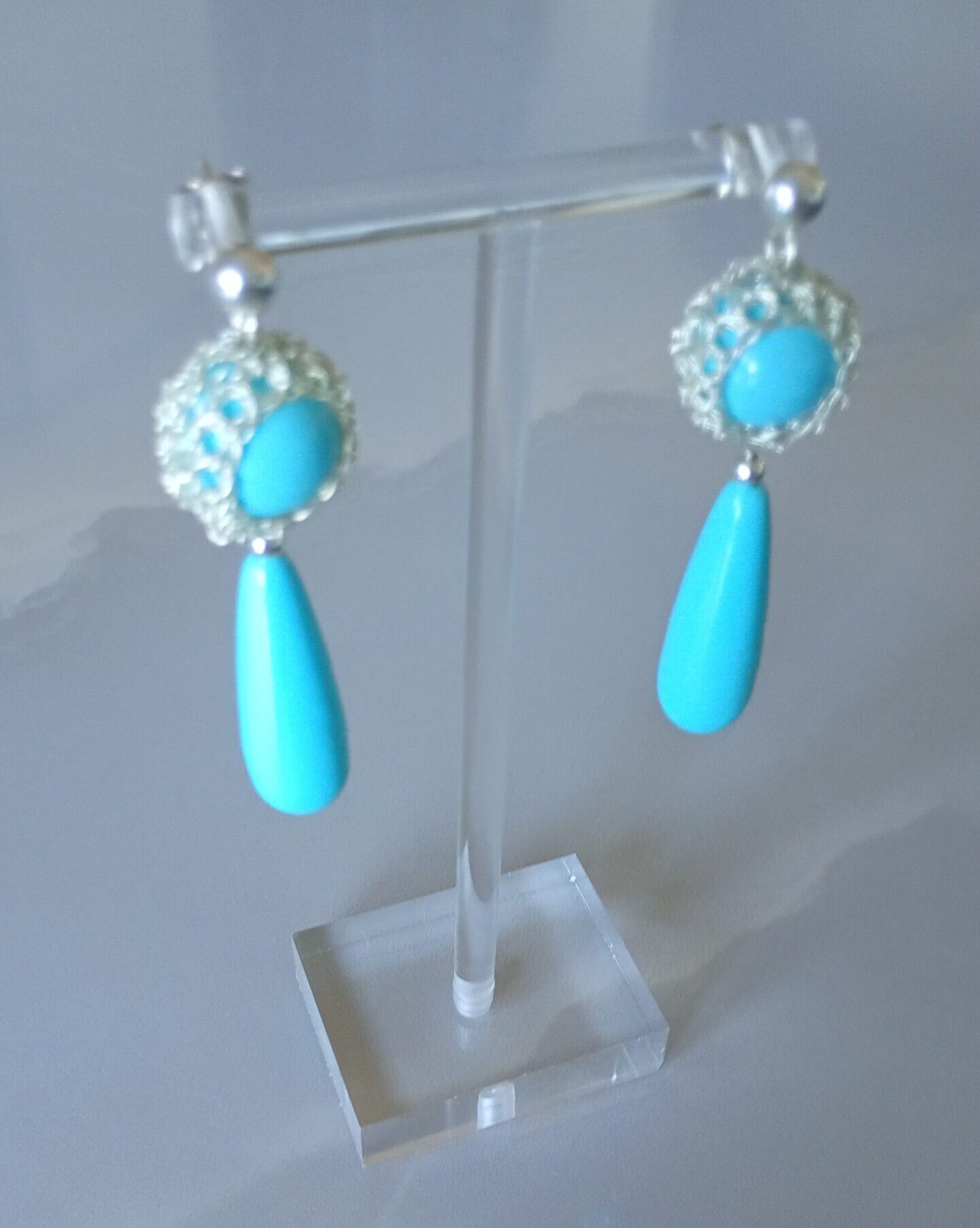 Orecchini pendenti in argento 925 oscillano linearmente con charm e montatura che racchiude una perla di maiorca di color turchese il suo significato simbolico è legato alla bellezza e all’amore, realizzati da sapienti mani artigianali . Il gioiello va indossato con disinvoltura aggiungendo eleganza alla tua personalità. 12mm spessore, altezza 55mm, larghezza 15mm – abbinabile con anello A0008 e collana C0014.