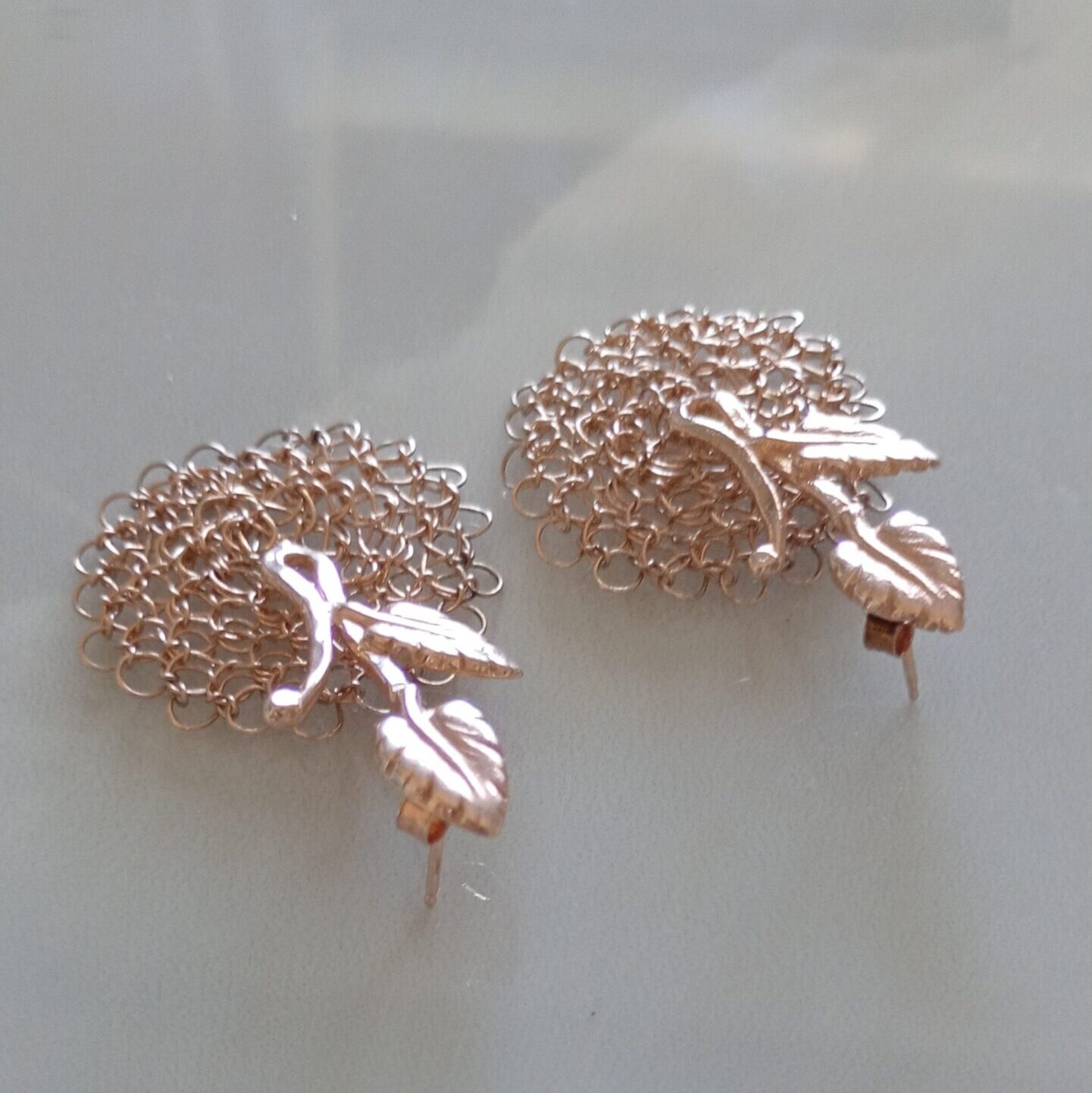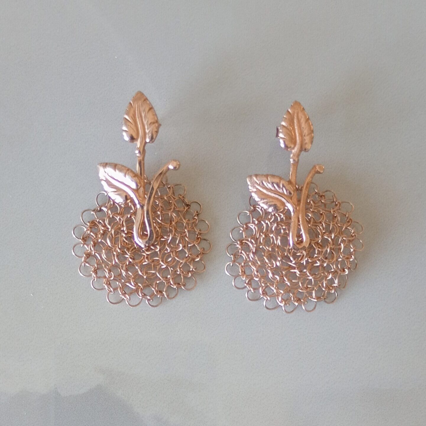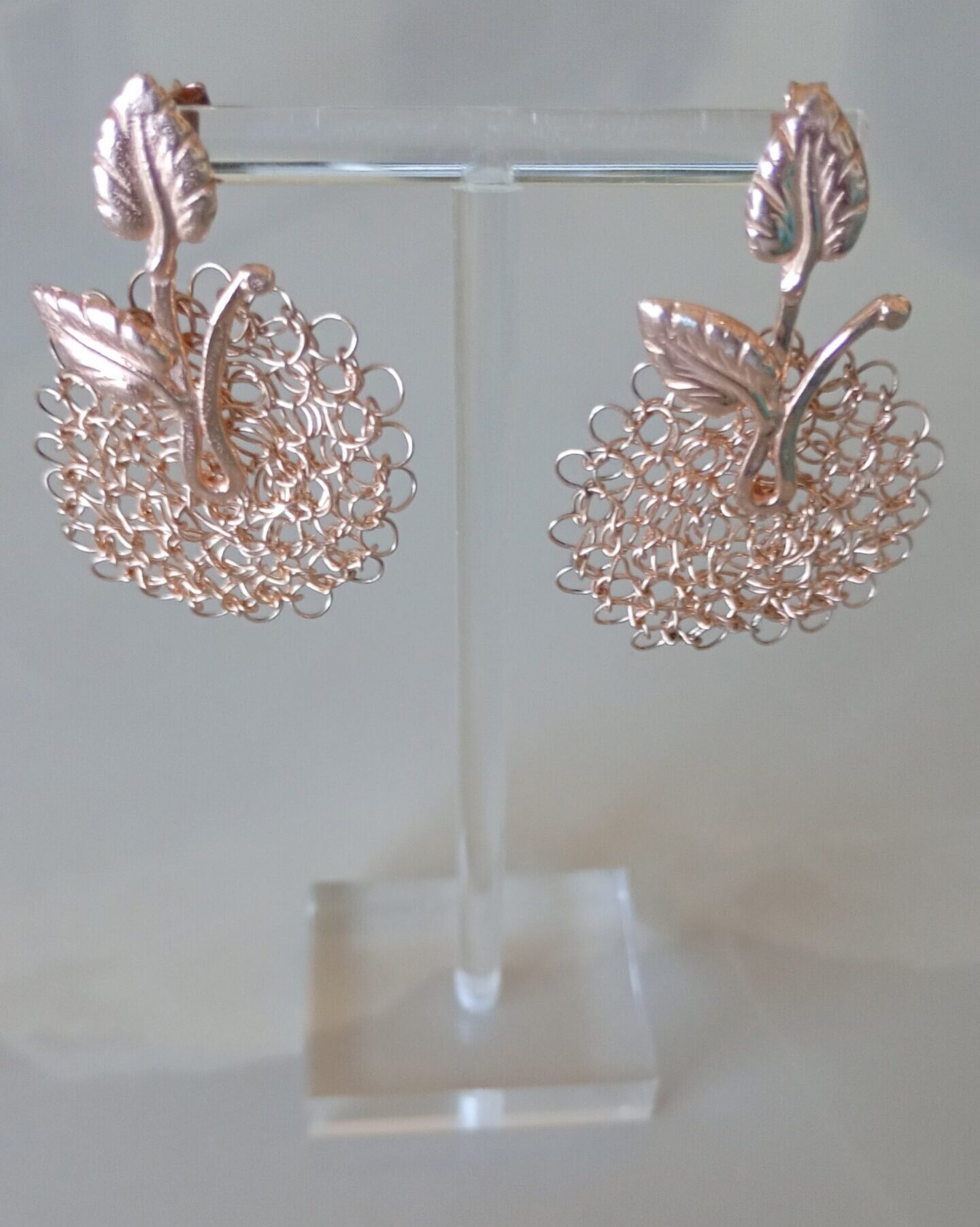 Lo stile originale ed esclusivo di questi orecchini in argento 925 placcati in oro rosa con elementi decorativi a foglia e stelo con chiusura a perno e farfallina, realizzati da sapienti mani artigianali. Il gioiello è splendido va indossato con disinvoltura aggiungendo eleganza e prosperità alla tua personalità . 2mm spessore, altezza 50mm, larghezza 30mm – abbinabile con anello A0024 e bracciale B0002.Â